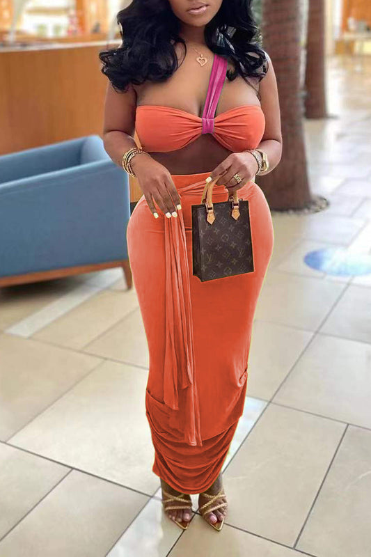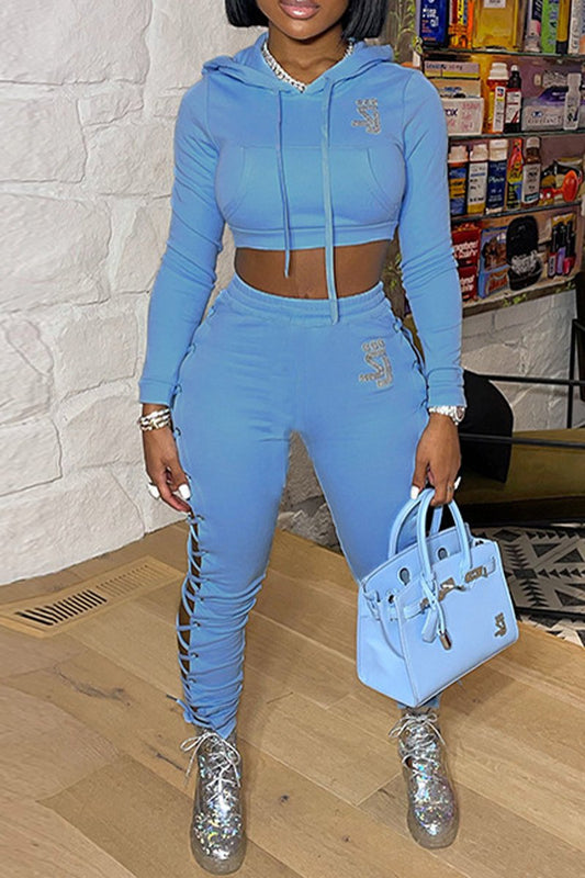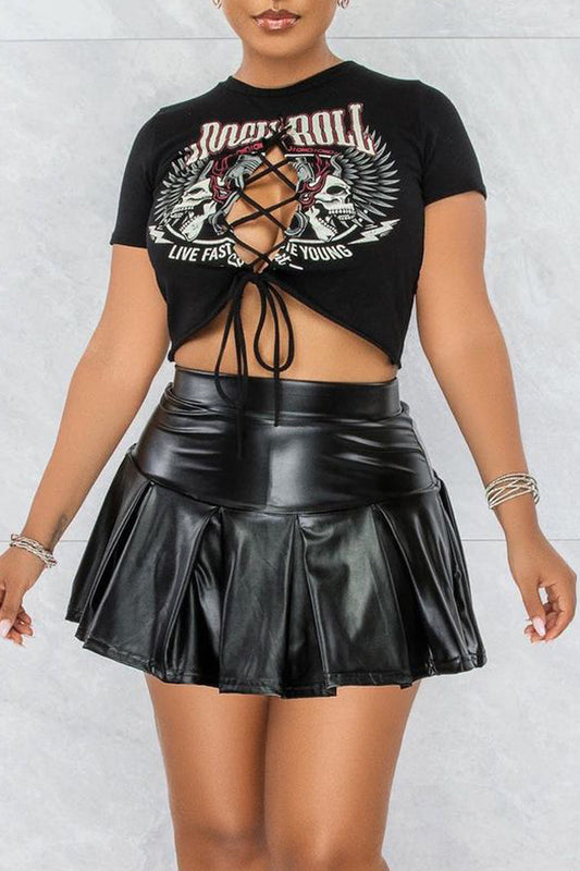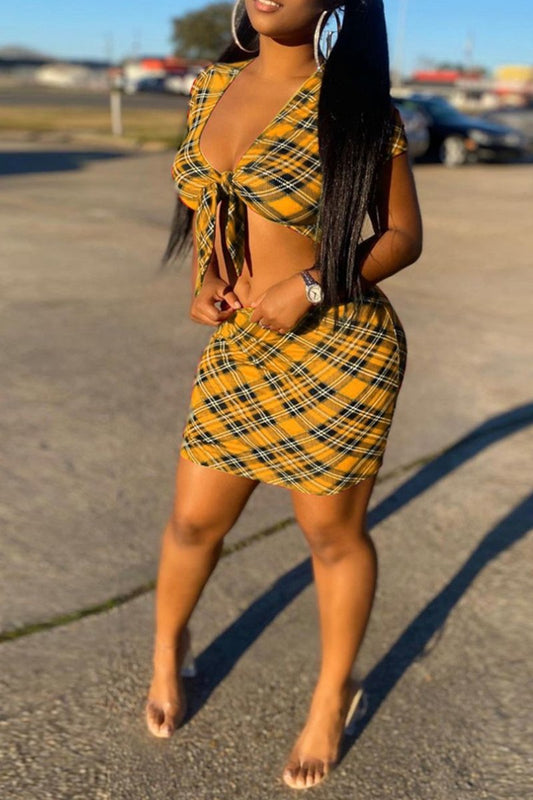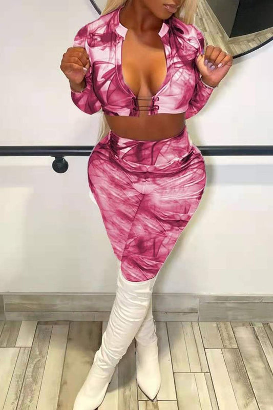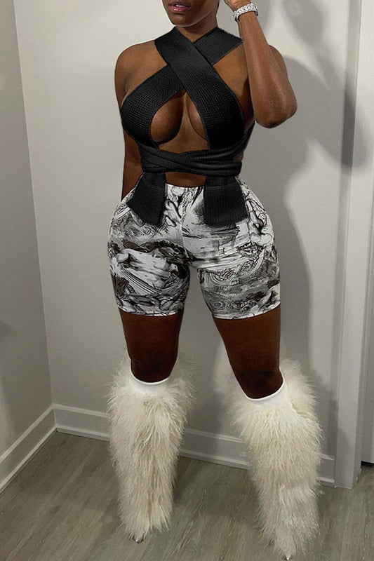 Bandage Eyelet Detail Digital Print Two Piece Dresses