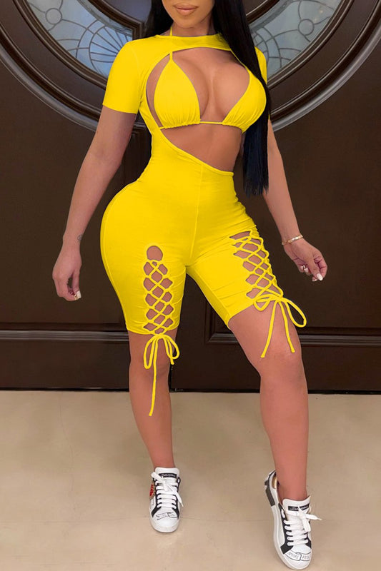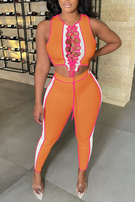 Bandage Deep V Neck Lace Up Sleeveless Top