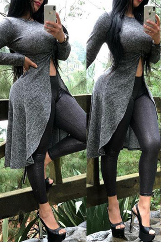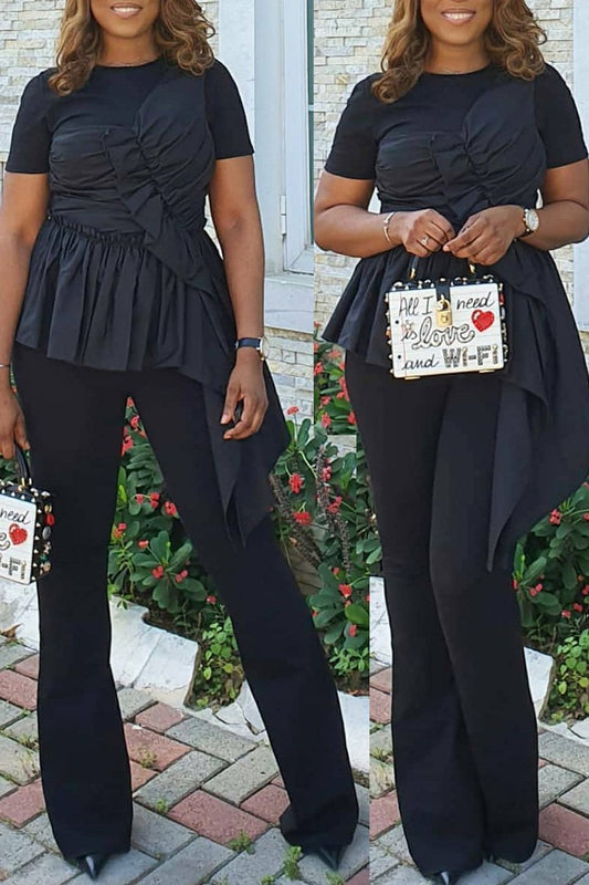 Asymmetric Hem Flare Sleeve Shirt Without Belt