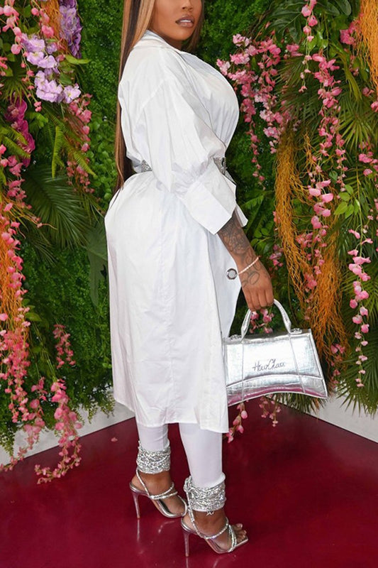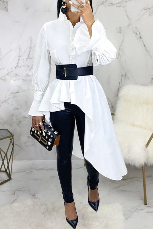 Asymmetric Hem Turndown Collar Shirt Without Belt