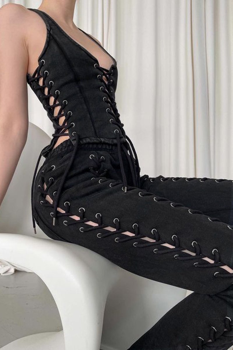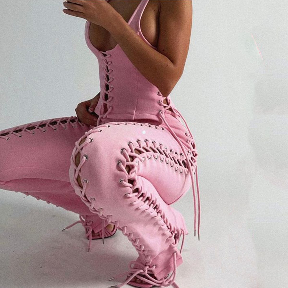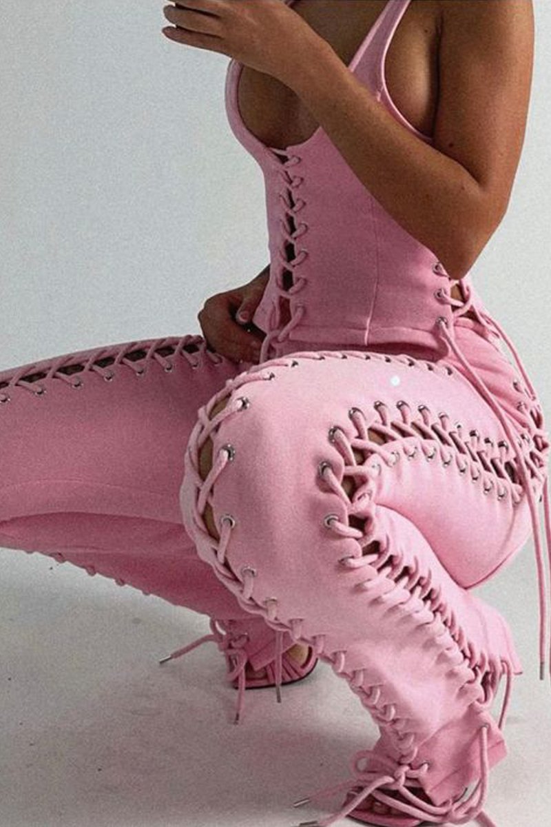 Bandage Scoop Neck Sleeveless Two Piece Sets